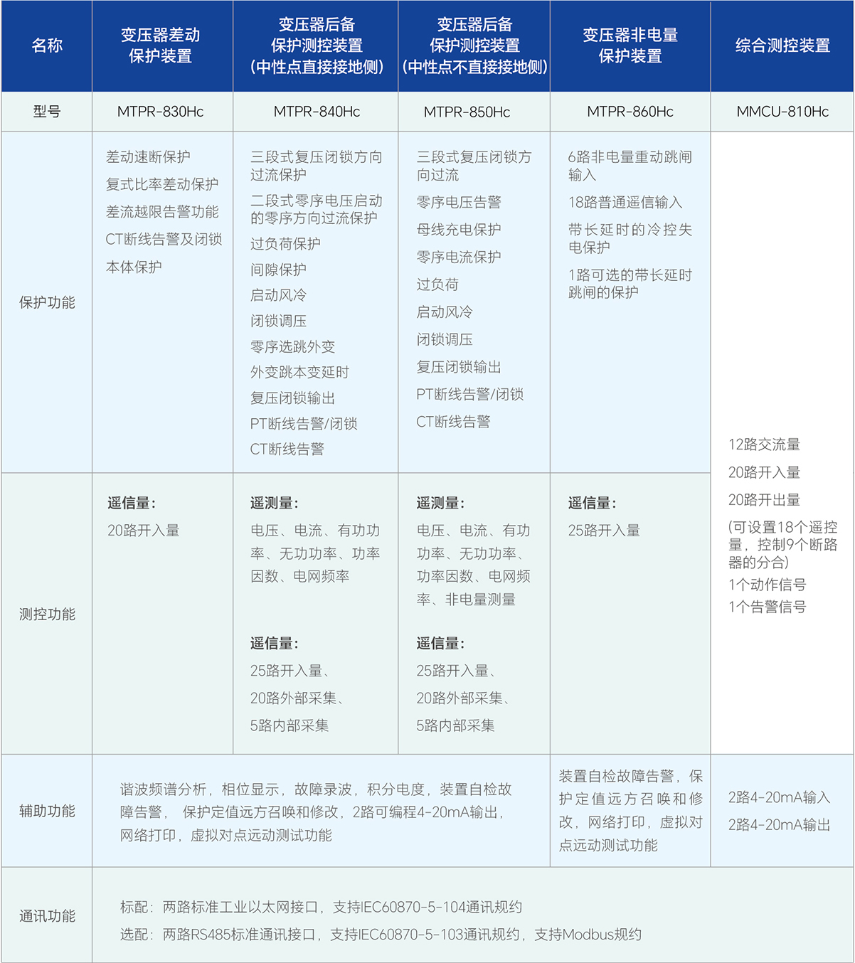 MTPR-800Hc系列變壓器成套保護裝置適用于110kV及以下電壓等級的主變壓器成套保護,包括主變差動保護裝置:MTPR-830Hc、主變后備保護測控裝置:MTPR-840Hc (中性點直接接地側)/MTPR-850Hc (中性點不直接接地側)、可選配主變非電量保護裝置:MTPR-860Hc及綜合測控裝置:MMCU-810Hc。本成套保護裝置既可集中組屏,也可以根據工程需要在開關柜上就地安裝。