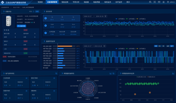 在開關柜內,部署了智能在線監測系統,能夠實時監測關鍵設備的運行狀態,包括斷路器分合閘電流、儲能電機電流以及柜內溫度等數據。通過數據的實時采集與分析,系統能快速診斷設備故障,并提前預警潛在風險,確保設備長期穩定運行,減少停機時間和維護成本。