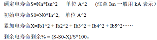 針對剩余電壽命電氣智能化系統則通過采集斷路器分合閘過程中的分段電流,結合斷路器出廠額定壽命與累計消耗電壽命,通過二者差值判斷剩余電壽命,其計算方法為: