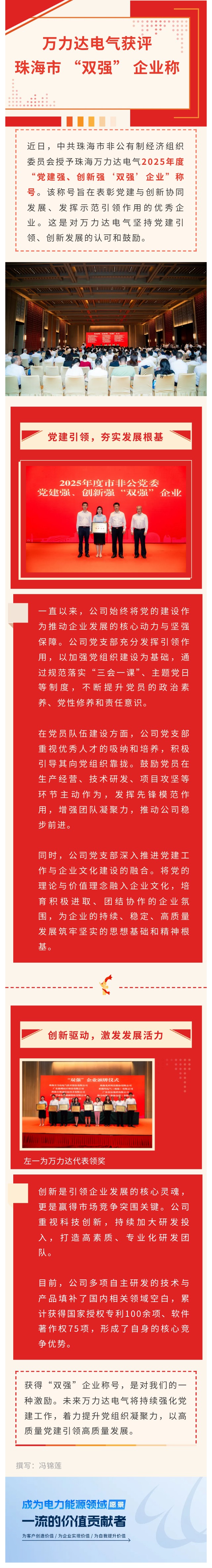 萬力達電氣獲評珠海市 “雙強” 企業稱號!