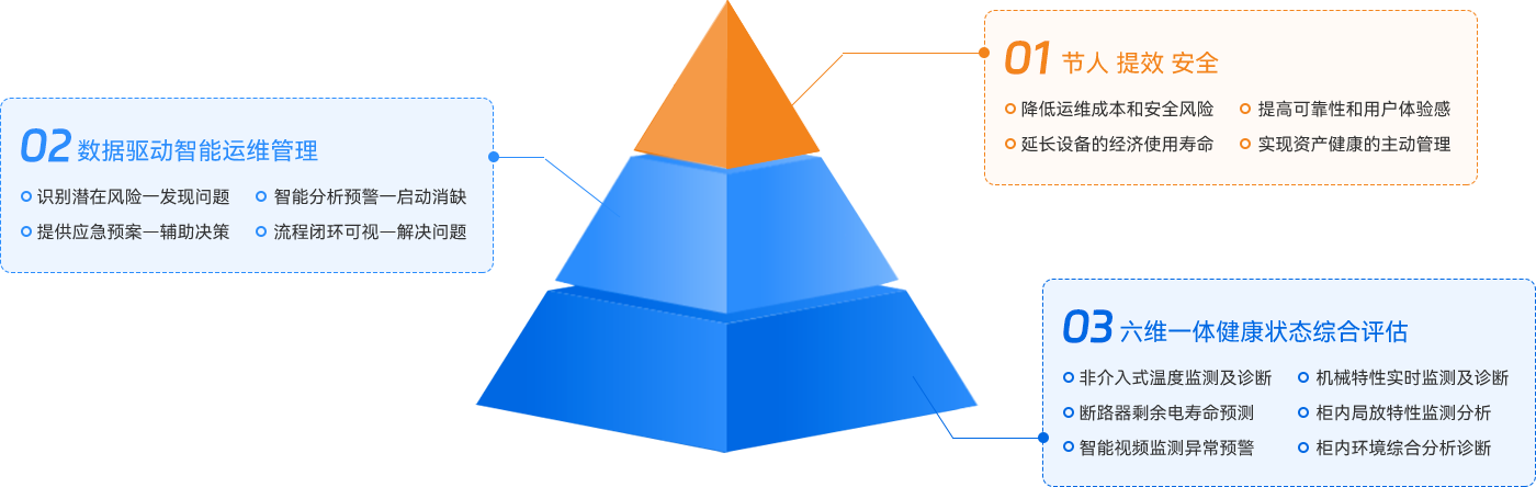 結合系統高級應用,通過人工智能、邊緣計算等技術,建立各種特征模型,實現開關柜健康狀態的“自我感知”,完成對設備潛在隱患實現預知、預測、預判,實現故障定位診斷、狀態評價并提前預警;實現計劃檢修為狀態檢修,達到“節人、節事、節能”及安全生產目的,滿足無人值守及智慧工廠的發展需求。