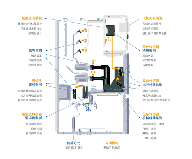 開關柜智能化解決方案能夠保障安全、提高效率,實時監測設備狀態,分析故障隱患、及時預警,滿足3.6kV-40.5kV電壓等級應用。