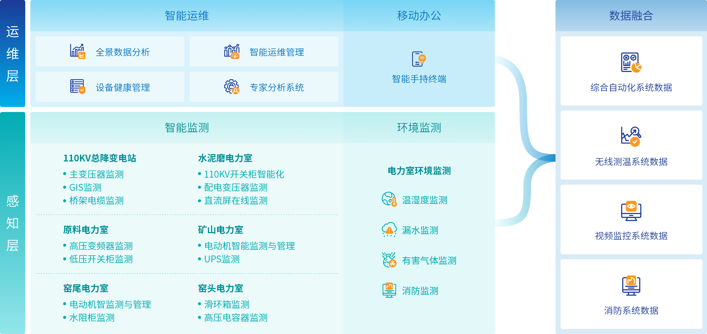 水泥行業電氣智能化整體解決方案,由電氣智能化系統、智能網關、智能監測傳感器三大部分組成。通過對關鍵電氣設備的關鍵指標進行監測、記錄和分析,實現對關鍵設備潛伏故障的診斷和早期發現,提升電氣設備運維水平,確保電氣設備長期安全運行,并減少電氣設備巡檢工作量,提高巡檢效率,精細化管理。為水泥企業安全的生產經營活動保駕護航,為水泥企業的提質增效、數字化轉型等新目標助力賦能。